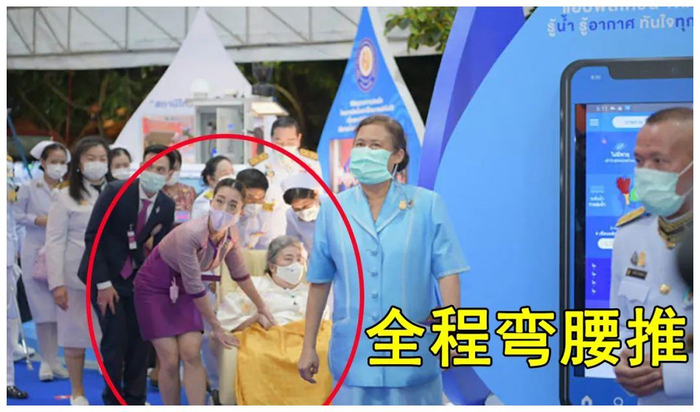 泰国大公主好孝顺,推着白发苍苍的母亲出现,跪地服侍也不嫌累