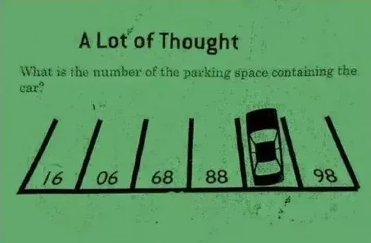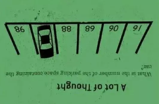 图中有六个停车位,每个停车位都有一个数字,然而其中一个数字被汽车挡住了,请你在20秒内答出这个被挡住的数字。