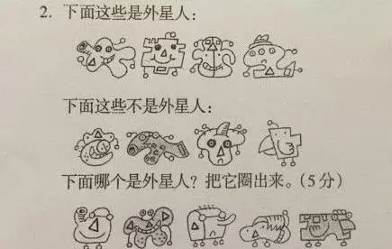 小学二年级数学题:“下面哪个是外星人?”某小学二年级数学考试题 | 微博截图