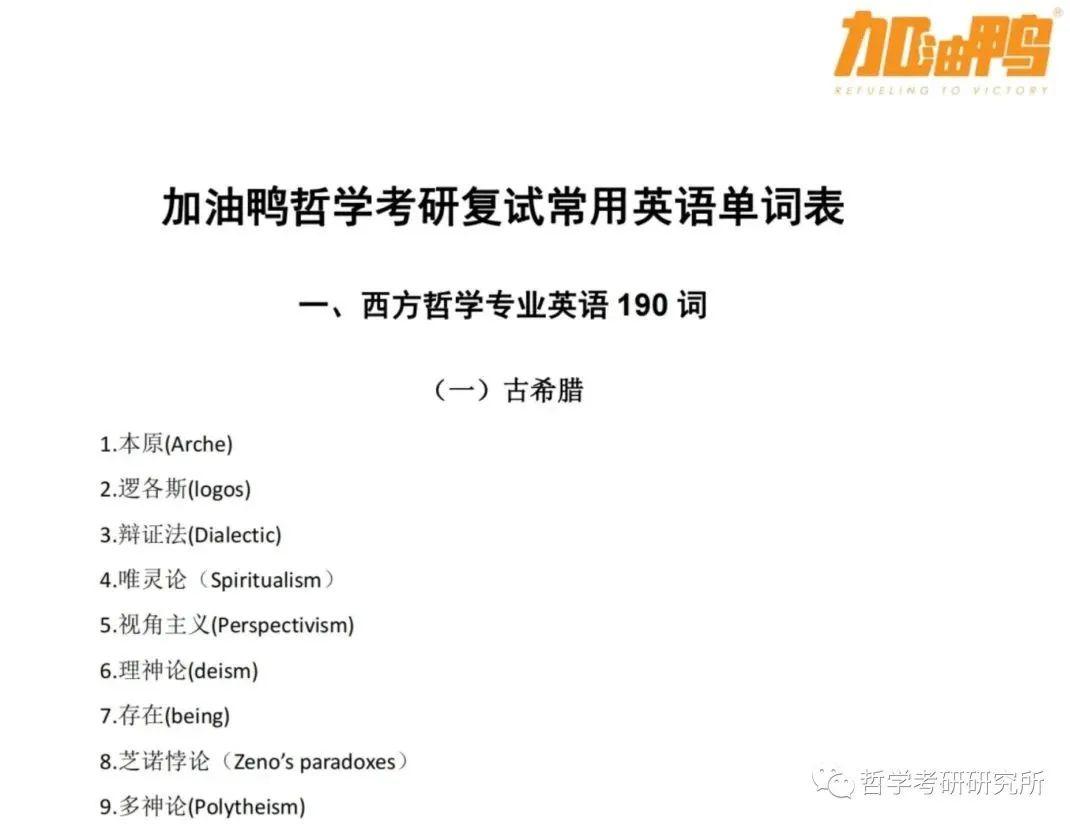 另外,常规的英语问题还是要备有相关答案,以便应急。哲学考研复试专业词汇锦囊!拿去直接背标准答案!