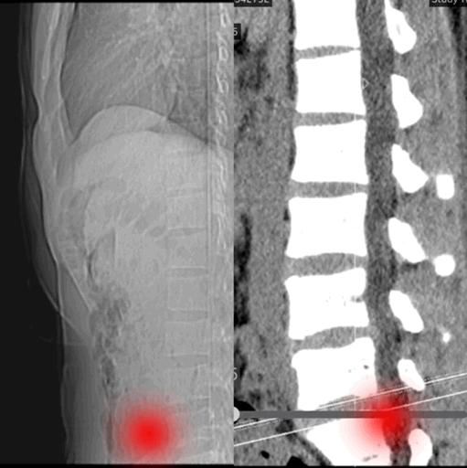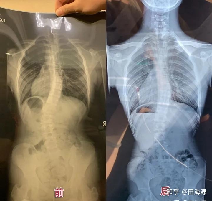 我带你来看一下这些不可思议的x光片。胸椎、腰椎去哪里了?这是一条直棍吗?